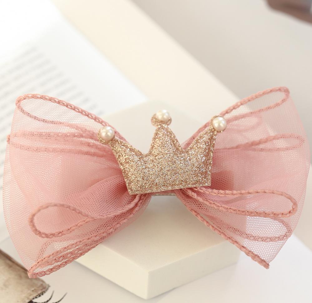3D Bow Mesh Hair Clip & Crown Headband for Girls