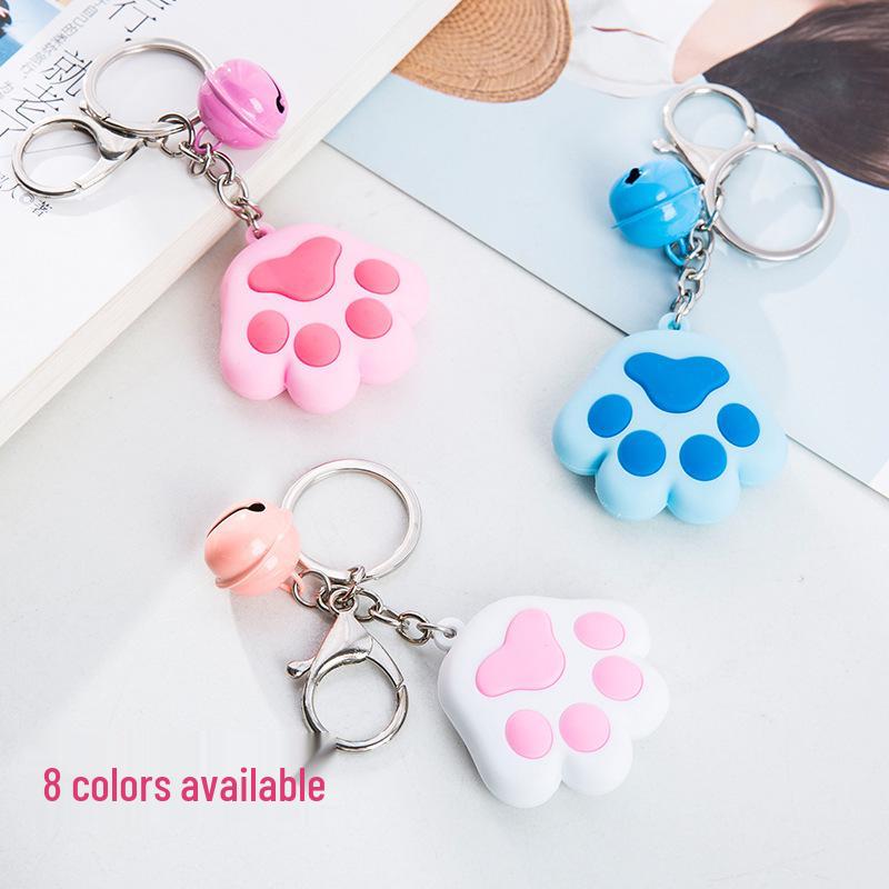Creative 3D Cute Soft Rubber Cat Paw Keychain with Bell - Car Pendant Ring
