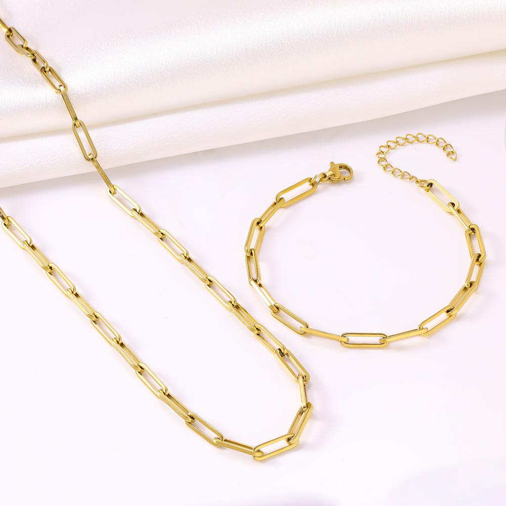 European-American Retro Punk Titanium Steel Paperclip Chain Bracelet Necklace Set for Women