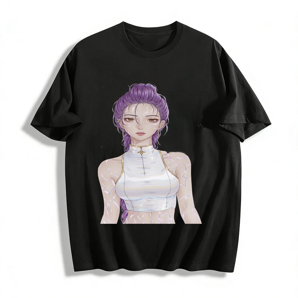 Purple Hair Girl Laser Pattern Print Crop Top Women's Slim Sleeveless Casual Streetwear Pure Cotton T-shirt