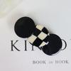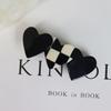 French Acetate Black Plaid Round Heart Spring Hair Clip - Elegant Black & White Design