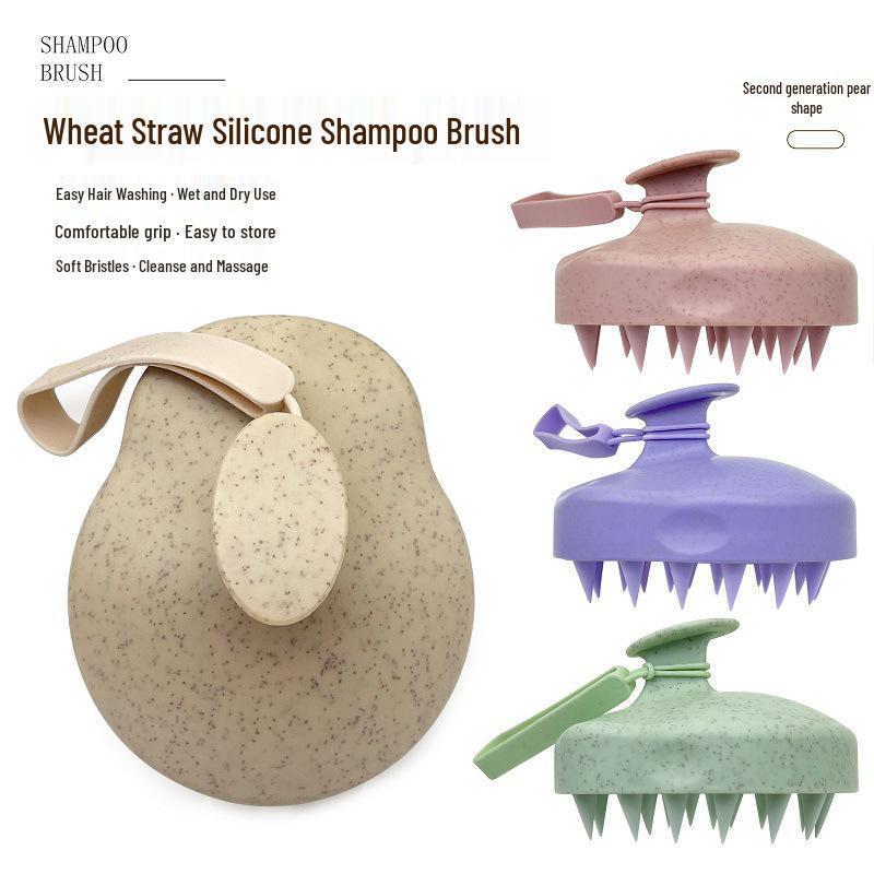 Wheat Straw Morandi Silicone Shampoo Brush, Scalp Massager with Lanyard