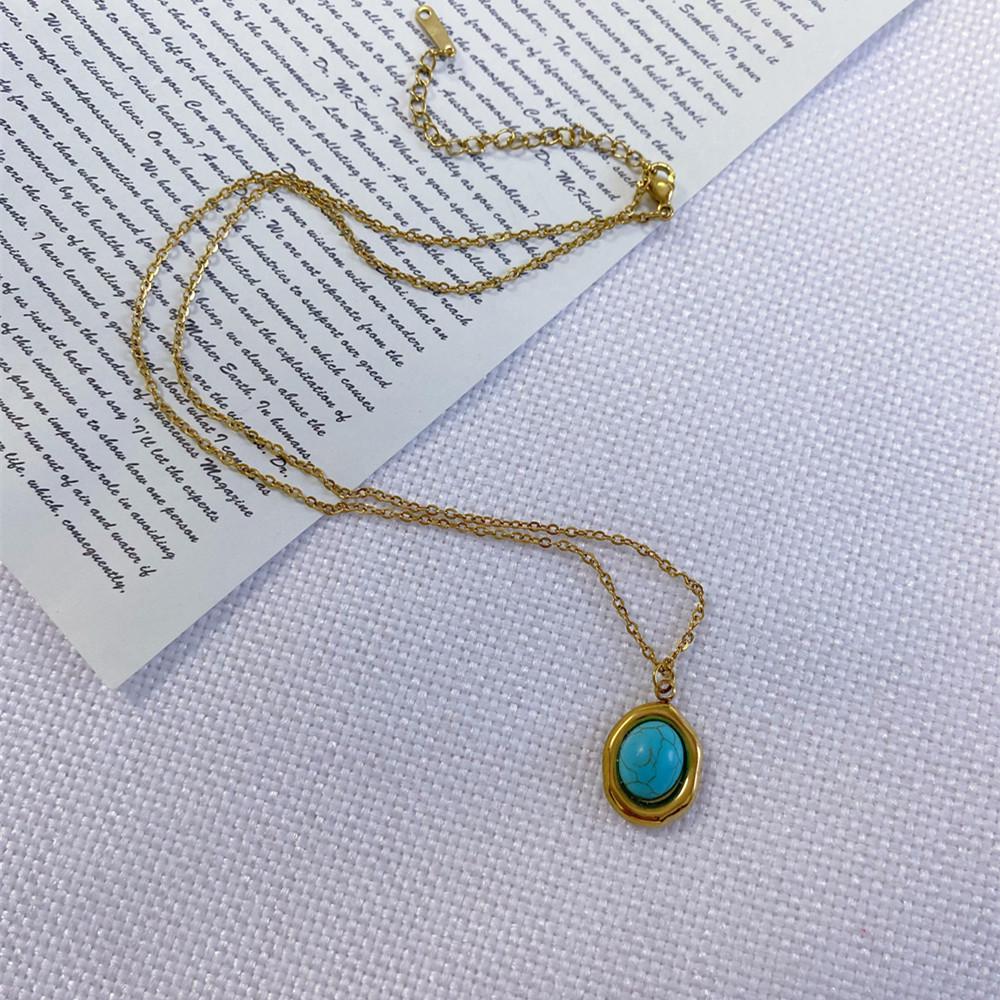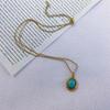 Retro Gold Titanium Steel Turquoise Geometric Necklace - Women's Color-Preserving Clavicle Chain Pendant