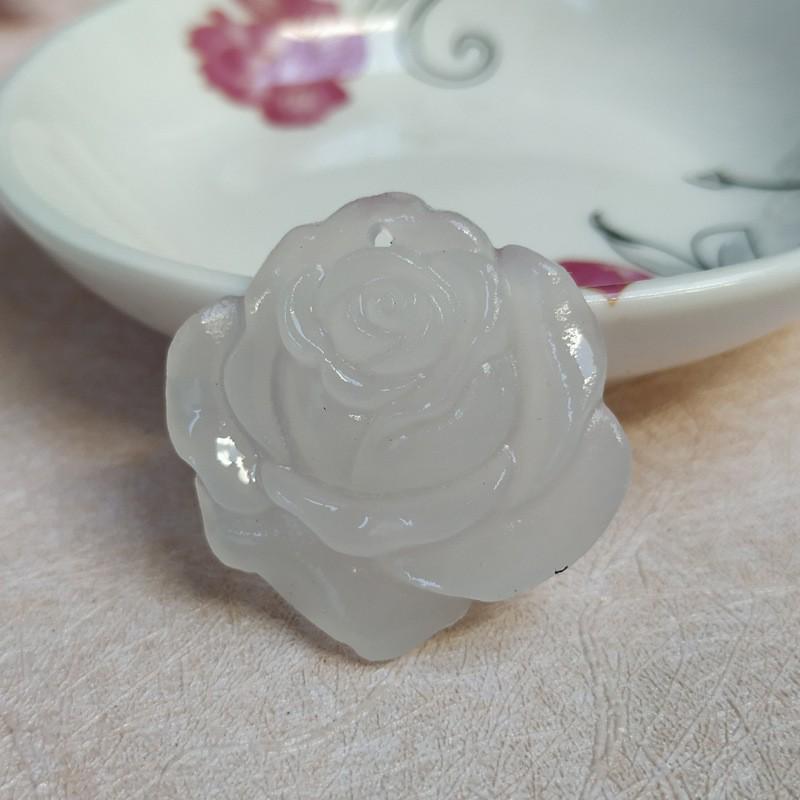 Afghan White Jade Rose Pendant - Xinjiang Flower Blooming Wealth Women's Jade Ornament