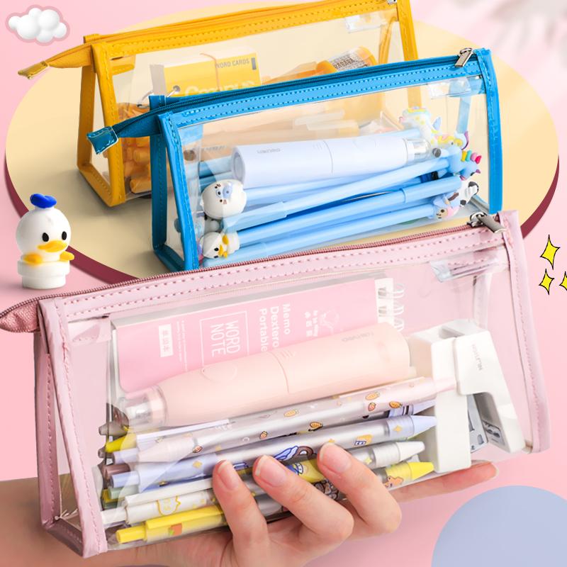 PVC Transparent Pencil Case Large Capacity Cosmetic Simple Pen Bag Stationery Waterproof Stationery Storage Pouch School Supplie