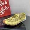 European Station Women's Summer Hollow Mesh Round Head One-word Ballet Shoes Soft Sole Comfortable and Breathable Mary Jane Shoes