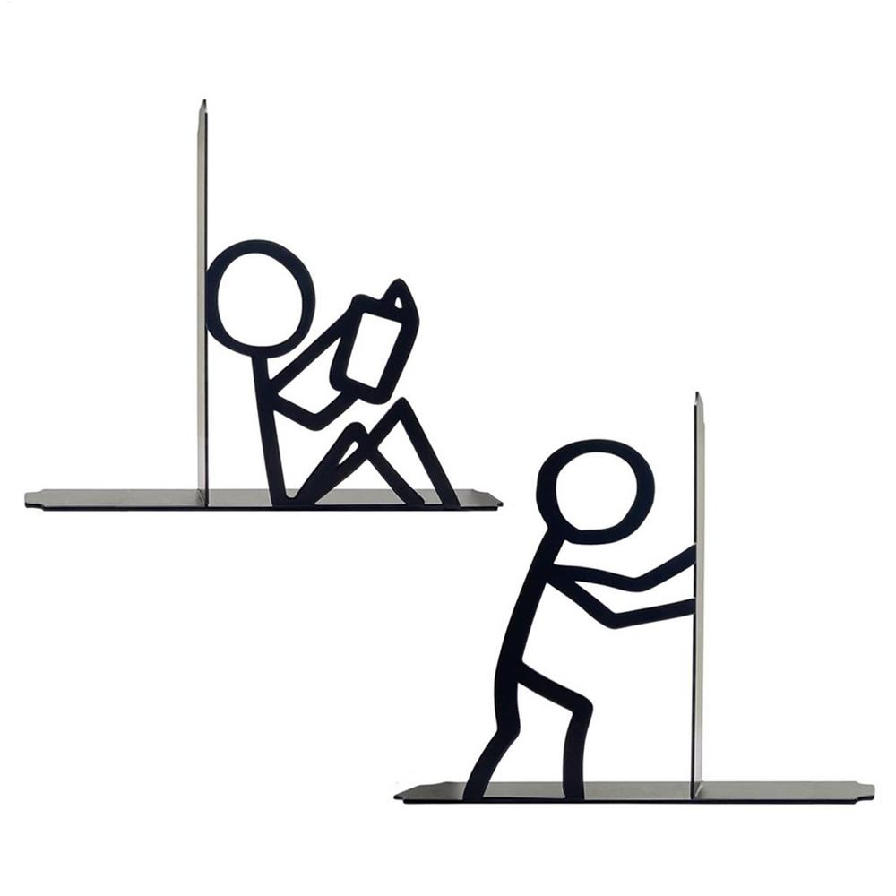 Black Iron Art Abstract Line Book Ends Vertical Figure Shape Metal Book Stopper Organzier Home Office Desktop Handicraft