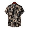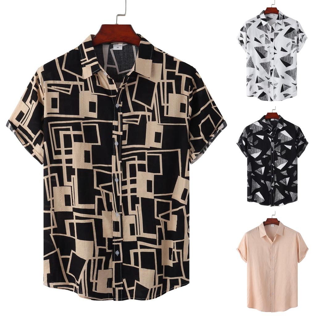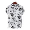 Men's Summer Casual Loose Resort Geometric Print Short Sleeve Top Beach Lapel Shirt