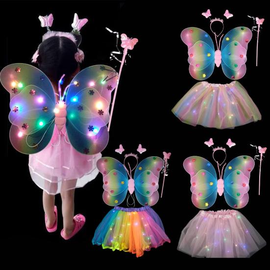 1 Set Luminous Butterfly Wings Set Kids' Glowing Wings Outfit for Halloween Costume Party Decoration