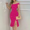Women's Fashion Sexy Summer Off Shoulder Short Sleeve Sequin Ruffle Irregular Dresses