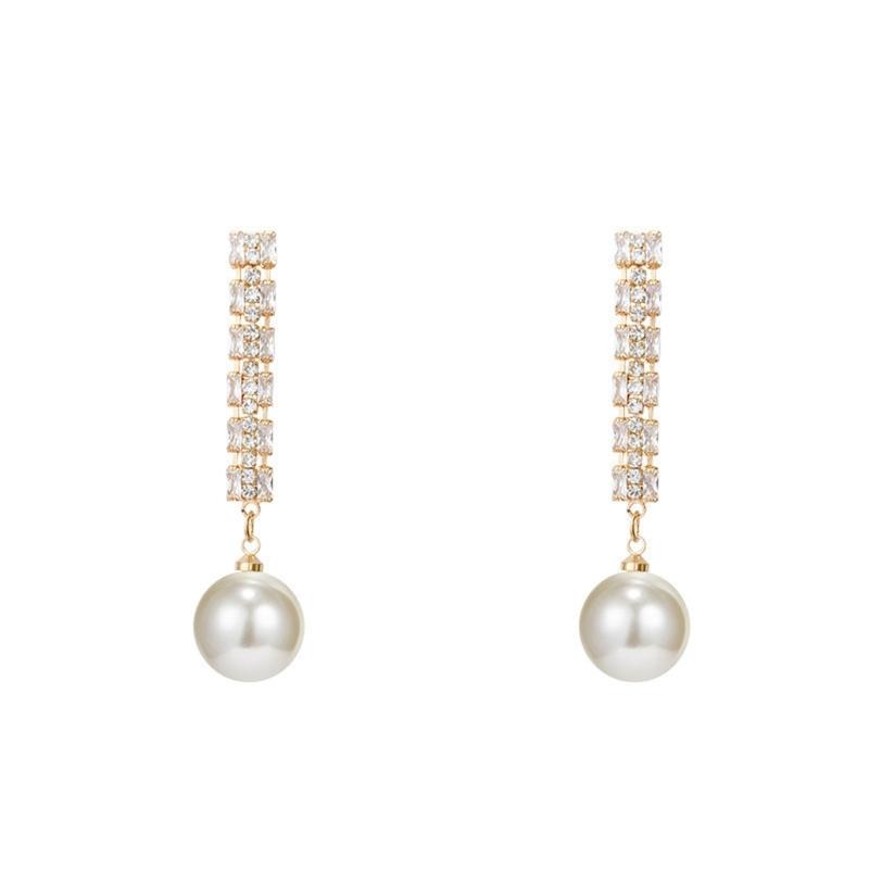 1 Pair Elegant Zircon Pearls Tassels Earrings Long Drop Design Enhances Face Contour for Women Allergy Resistant Copper