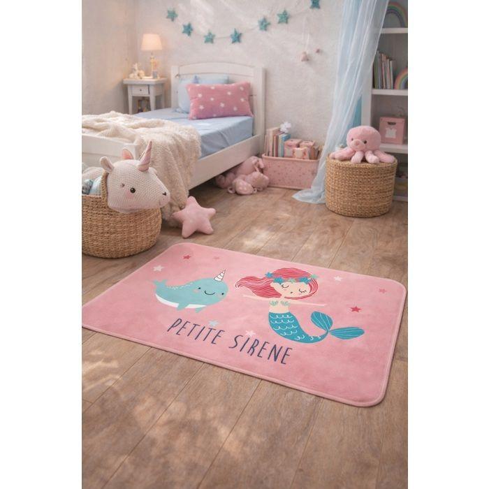 Tapis décoratif - EDEN - Petite Sirène et Narval - 75 x 45 cm - Polyester doux - Couleurs pastel