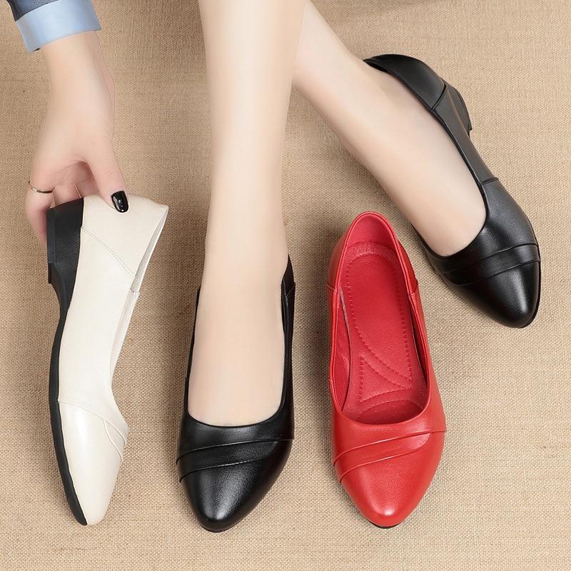 Spring and Autumn New Leather Women's Single Shoes Women's Shoes Soft Sole Non-slip Flat Sole Medium Elderly Mother Single Shoes Large Size