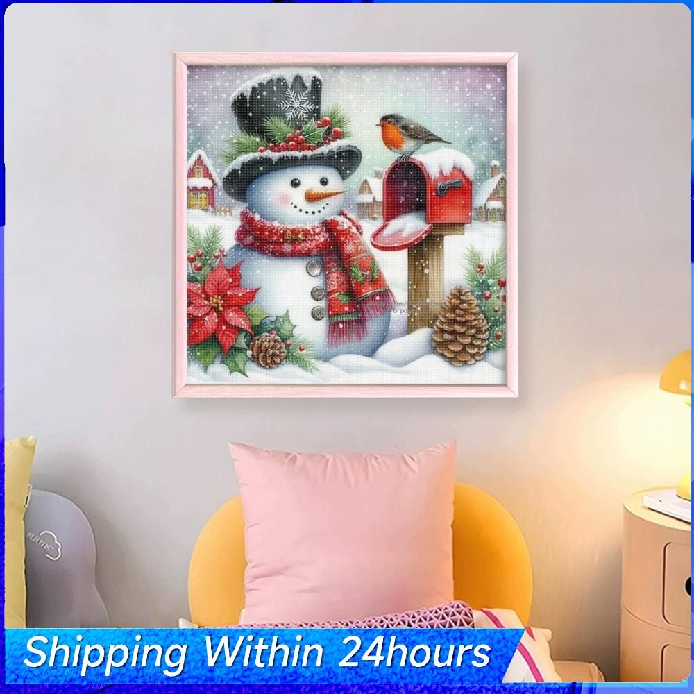 (Snowman and Mailbox/Christmas Snowman)--Cross Stitch KitsChristmas Full 11CT DIY Stamped Embroidery Needlepoint Starter Kits 17.72x17.72in Cross Stitch Art and Crafts Kits for Beginners Adults Home Decor