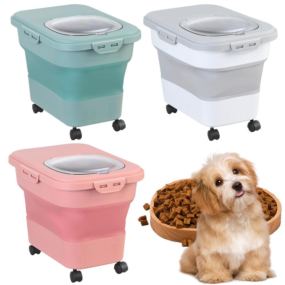 Collapsible Cat Dog Food Storage Container 20-30LB Foldable Cat Food Bucket Large Capacity Dog Snack Container with Lid & Wheels