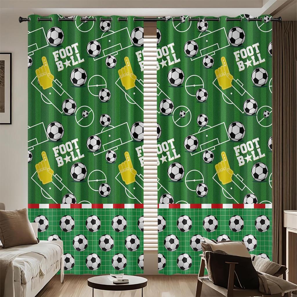 World Cup Football Pattern Blackout Curtain for Boys' Bedroom - High Heat Insulation, Custom Size Available