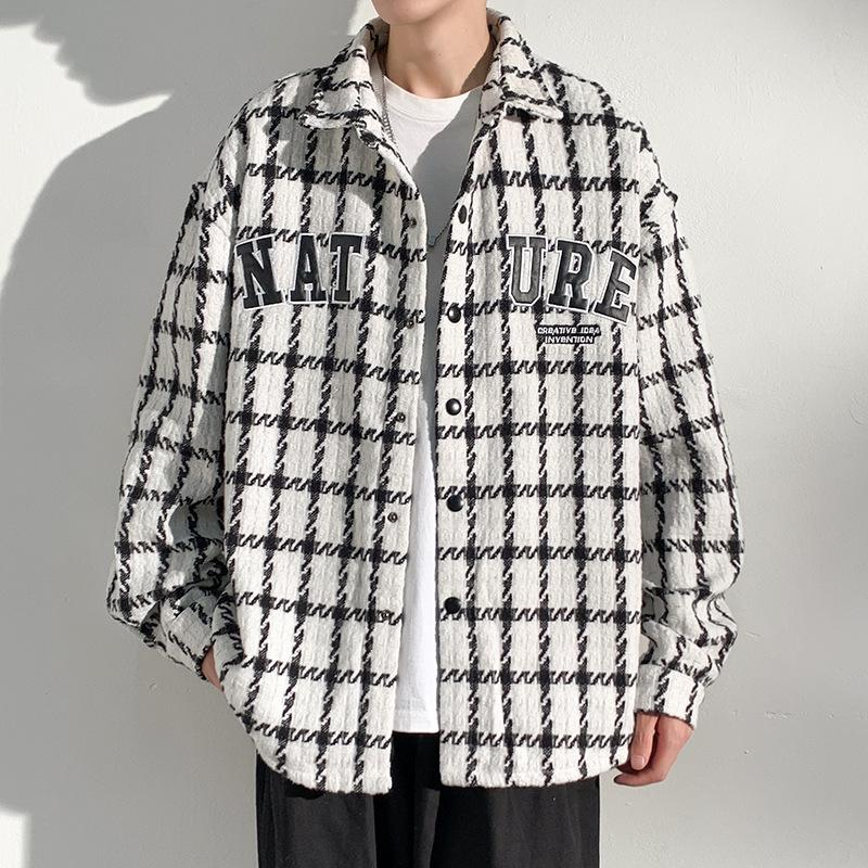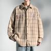 Men's Long-sleeved Shirt Autumn New Hong Kong Wind Jacket Casual Shirt Lapel Plaid Shirt Fashion Loose Coat