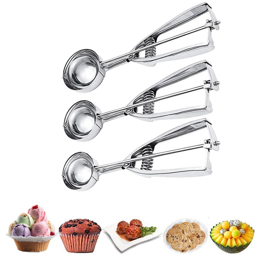 Ice Cream Scoop, 1/3PCS Cookie Scoops For Baking Stainless Steel Ice Cream Scooper With Trigger Release For Portion Control