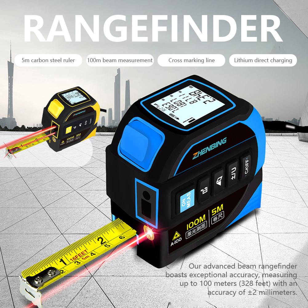 1. **Precision Two-in-One Measuring Tool:** Our advanced beam rangefinder boasts exceptional accuracy, measuring up to 100 meters (328 feet) with an accuracy of ±2 millimeters. This multi-functional device also integrates a reliable 5-meter (16.4-foot) coated carbon steel tape measure with both metric and imperial scales, ensuring you have the ideal tool for a variety of measurement tasks. Its wear-resistant tape measure is useful.