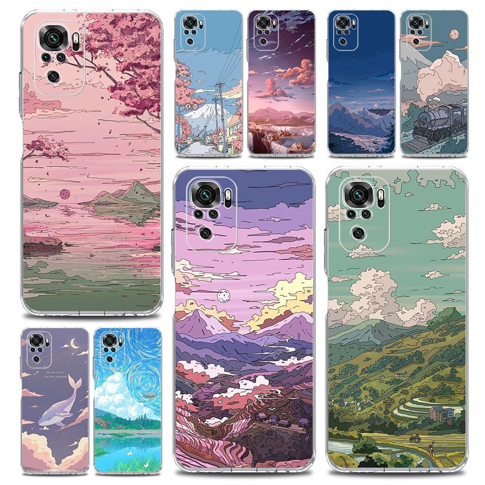 INS Japan Sunset Scenery Clear Phone Case For Xiaomi Redmi Note 12 5G 9S 9 8 10 11 Pro+ 9T 8T 10C 9C 9A 7 Pro Soft Back Cover