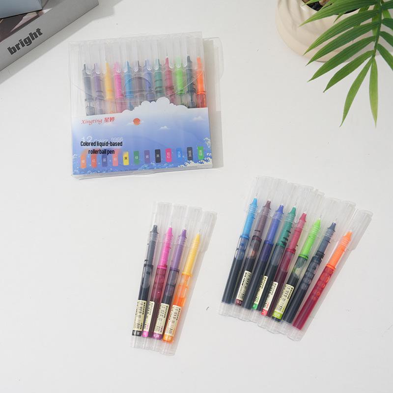 12-Color Quick-Dry Rollerball Pen Set - Large Capacity, Water-Based, Multi-Color for Students and Journaling