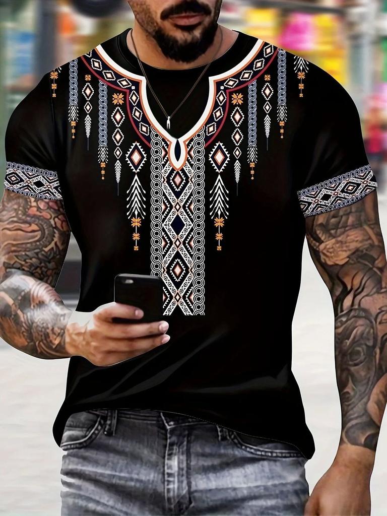Retro Pattern 3D Printed Men's T-shirt Short Sleeved Slim Fit Spring Fashion
