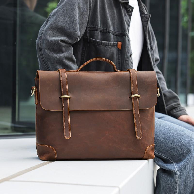 Crazy Horse Leather Crossbody Bag Genuine Retro Travel Shoulder Men's Business Casual Handbag