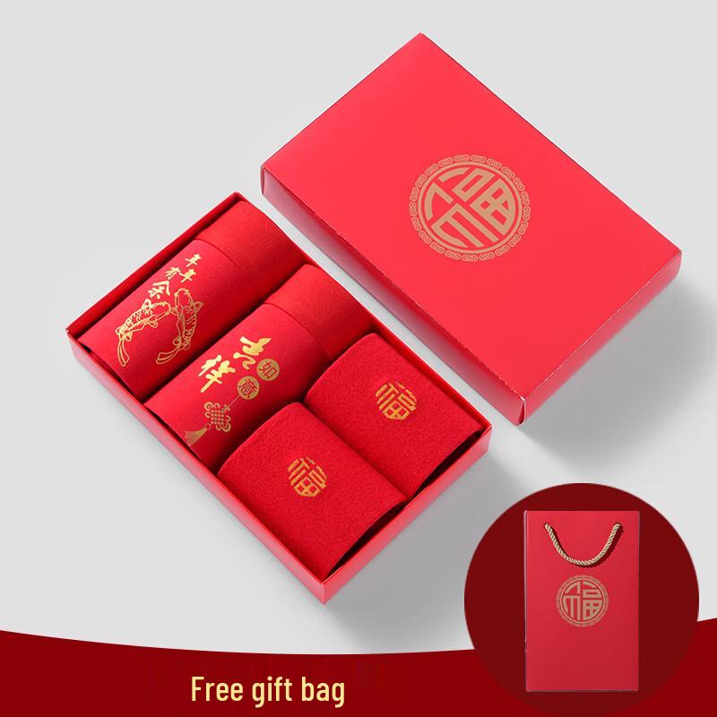 Caizhiyan Men's Mid-Waist Boxer Briefs Gift Box with Lucky Socks