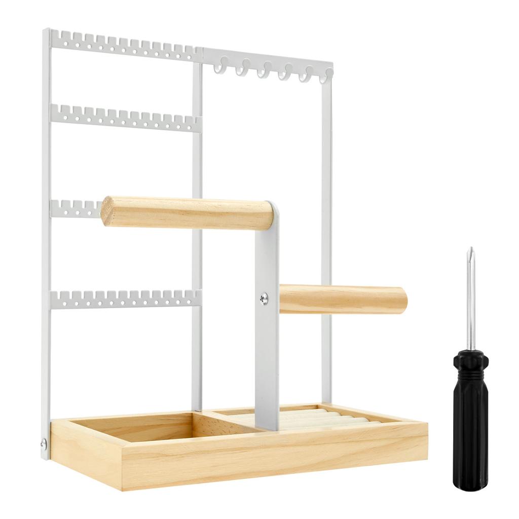 4 Tier Jewelry Organizer Stand Jewelry Display Holder with 48 Holes 6 Hook Earring Ring Bracelet Stand Rack for Table Countertop