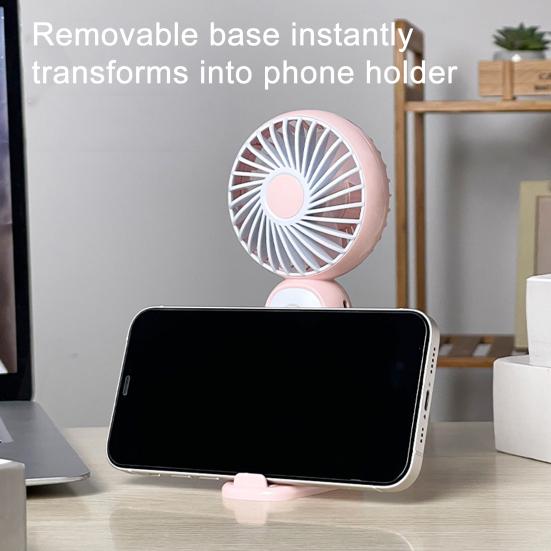 This handheld fan combines sleek design with practical functionality, serving as both a cooling device and a stylish desktop accessory. Its foldable handle doubles as a mobile phone stand, allowing hands-free use during video calls or entertainment. Compact and portable, it's perfect for commuting, office work, or outdoor activities.
