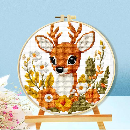 Embroidery Starter Kit for Beginners Cross Stitch Set with Floral Animal Landscape Patterns Pre-Printed Fabric Threads Needles Instructions DIY Craft