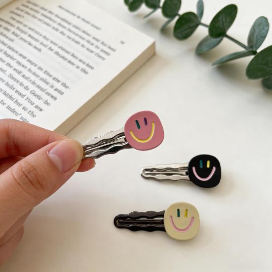 4Pcs Girl Hairpin Smile Face Pattern Stable Clamping Force Smooth Metal Edge Hair Clips Side Bang Hair Accessories