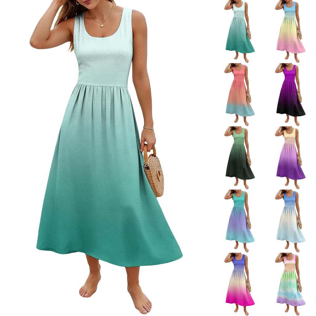 Ladies' gradient printed summer casual and fashionable sleeveless long dress