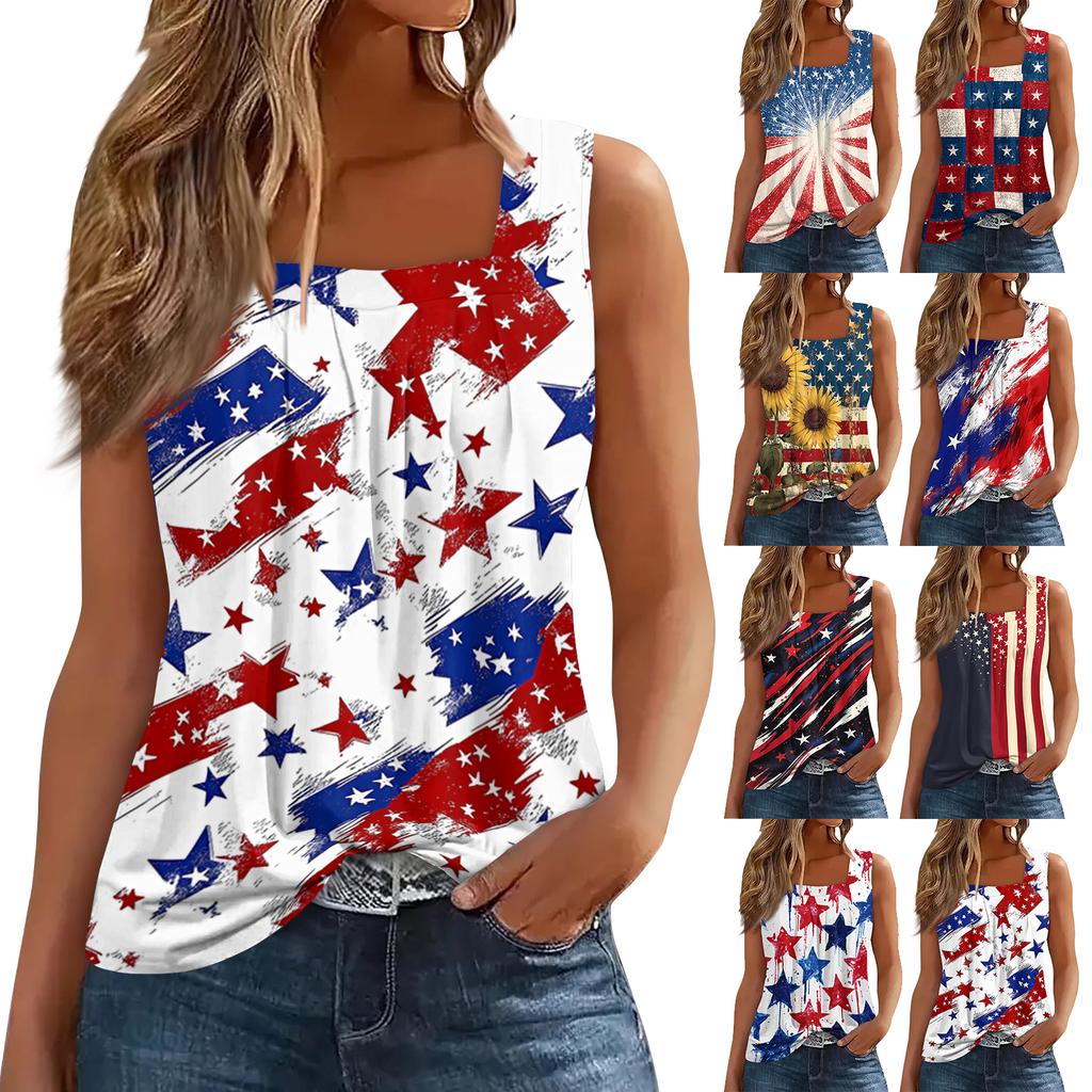 Square Collar Tank Top Women Print Tank Tee Casual Loose Fit Sleeveless Shirt