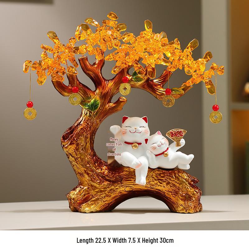 Money Tree: Wealth-Attracting Cat Figurine for Shop or Home, Perfect for Store Opening and Housewarming