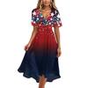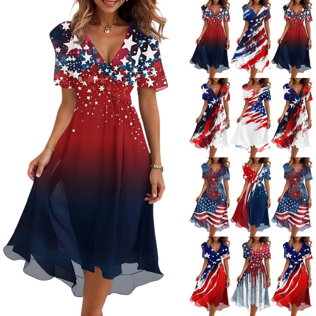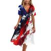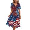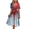 Women's Casual V-Neck Short-Sleeve Independence Day Print Dress