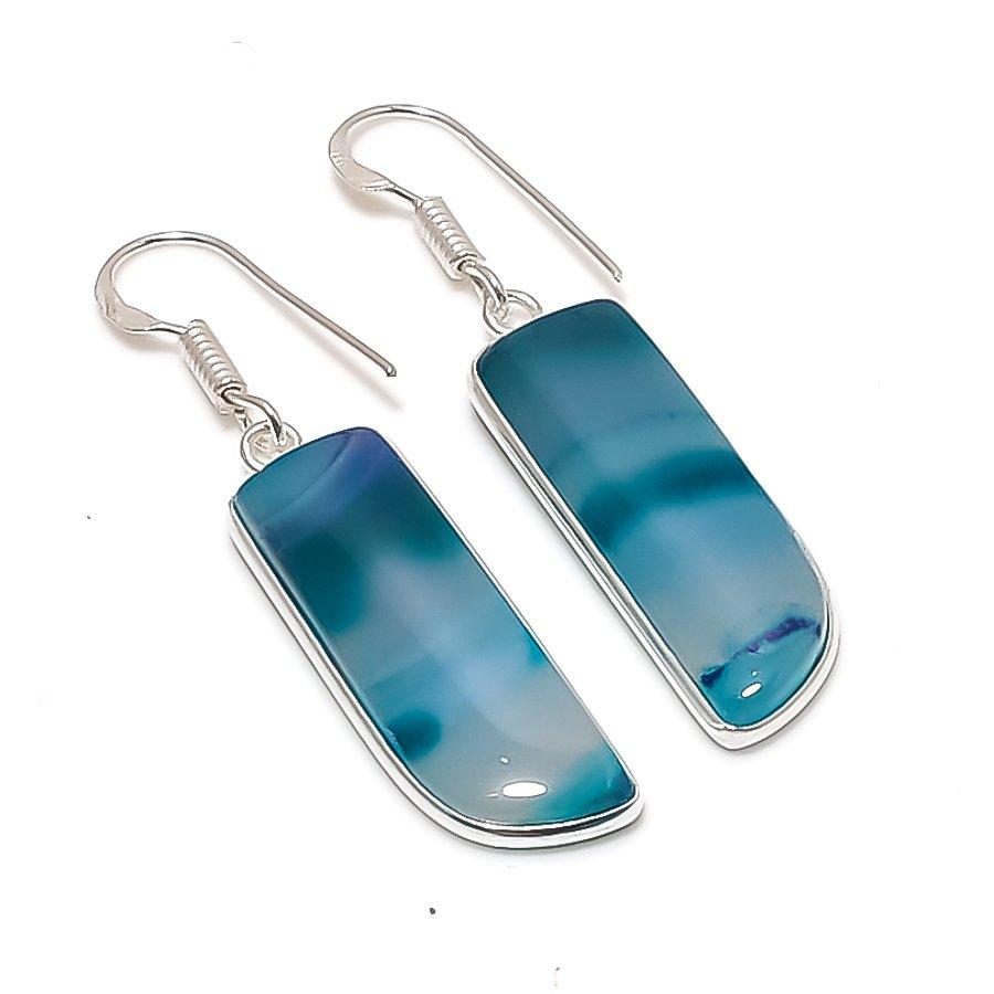 Natural Blue Lace Agate Gemstone 925 Sterling Silver Jewelry Earring 1.85" AE-12246