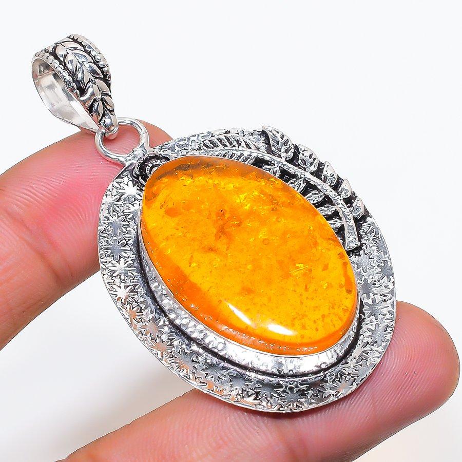 Natural Baltic Amber Gemstone 925 Sterling Silver Jewelry Pendant 2.44" AP-14109