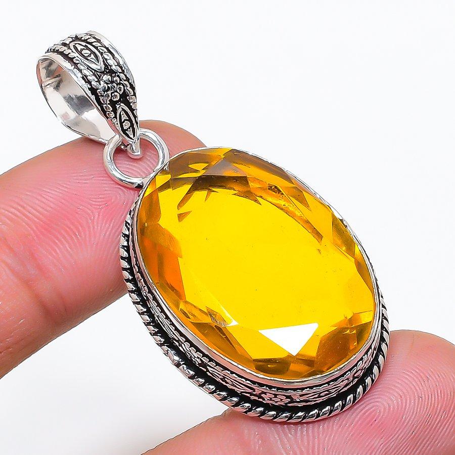 Natural Citrine Gemstone Handmade 925 Sterling Silver Jewelry Pendant 1.97" AP-14251