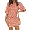 Women's Fashion Plaid Drawstring Waistband Indented Seventh Sleeve Dress