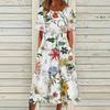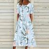 Women's Summer Casual Fashion Printed Short Sleeve 2022 O-Neck Pocket Dress