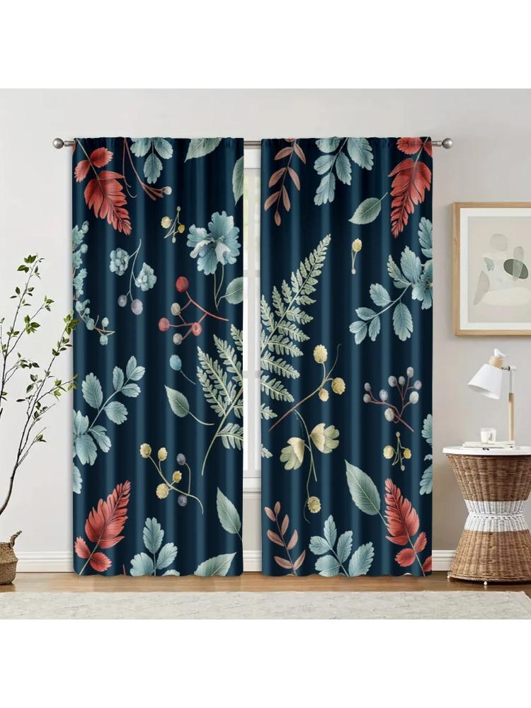 Set Of 2 Contemporary Curtains Boho Nature Leaf Versatile Polyester Without Rod All Seasons Perfect Bedroom Living Room Curtain For Made