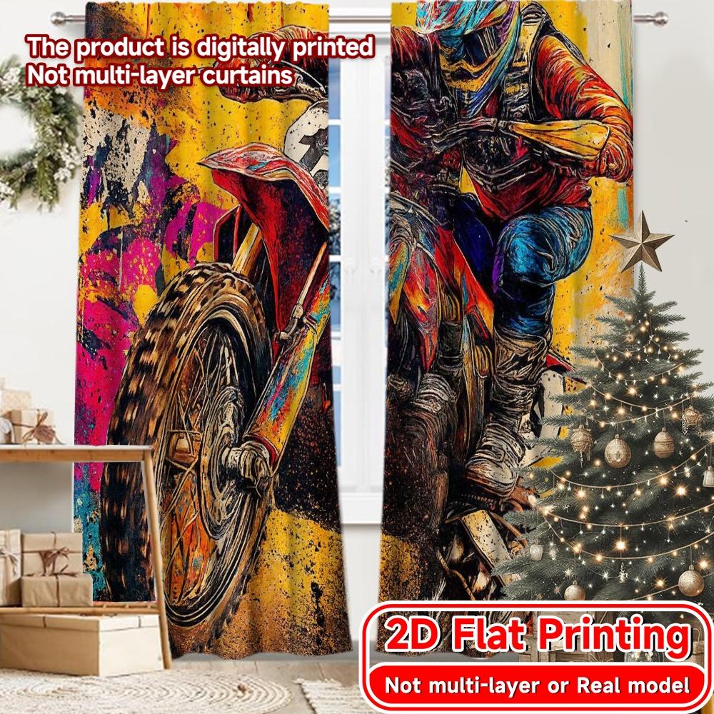 Set Of 2 Flat Printing Dynamic Rider Chic Curtains Polyester Easy Install Home Decor Perfect Digital Living Curtain