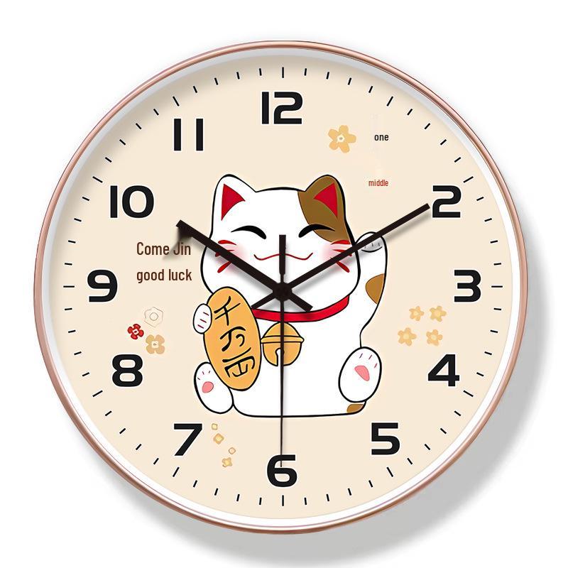 8-inch Lucky Cat Silent Wall Clock for Living Room Decoration