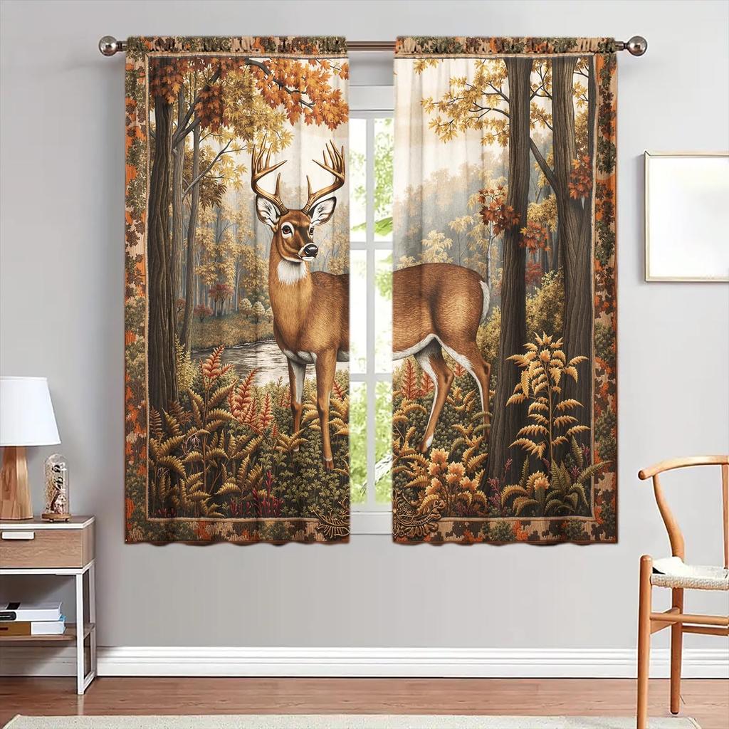 Set Of 2 American Elk Forest Decorative Curtains Uv Insulation Privacy Protection Retro Style Made Polyester