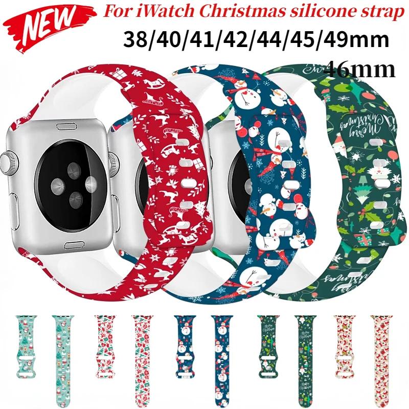 Christmas Silicone Strap For Apple Watch Ultra 49mm 10 9 8 7 45mm 41mm 42mm 46mm Bracelet Wristband iWatch 6 5 4 SE 44mm Correa