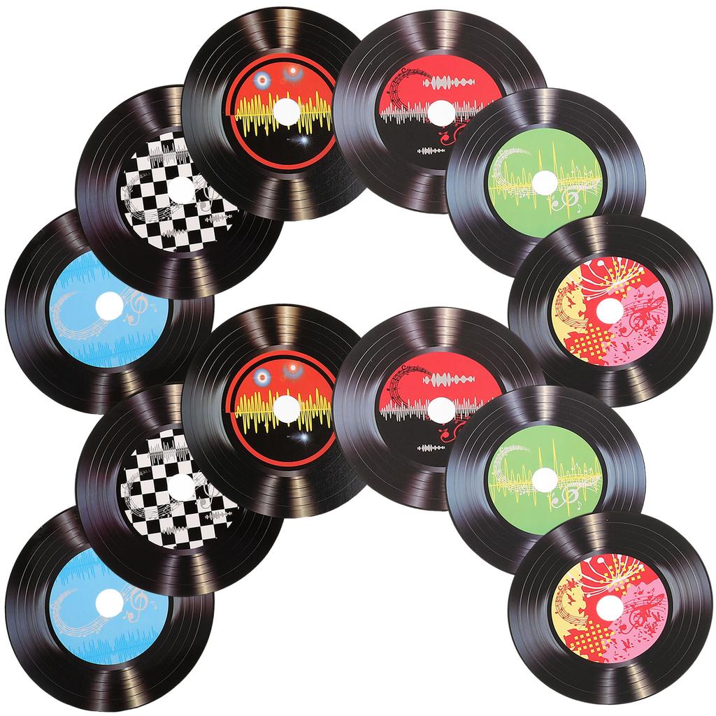 12Pcs Retro Vinyl Record Decoration Wall Stickers Paper Records Home Decor Music Naments Fake Discs Art Black White Colorful