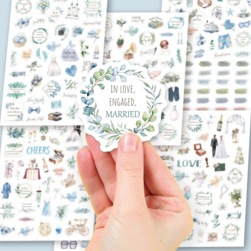 New 6-Sheet Wedding Bliss Stickers - Romantic Self-Adhesive Decor for Journal, Wedding Plan & Scrapbooking DIY
