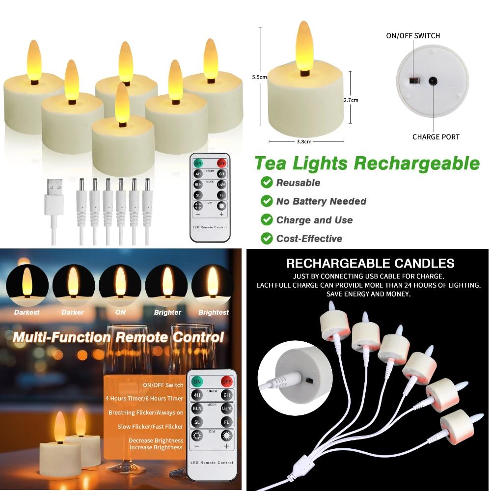 Good luck with your favorite purchases【Rechargeable & Eco-friendly】: Our led tea lights with remote come with a USB charging cable, allowing you to recharge them easily and conveniently. You only need a full charge of 3 hours to get over 30 hours of use in the brightest light, or longer in medium or dim light. Say goodbye to constantly buying and replacing batteries, and do your part for the environment with these rechargeable candles.