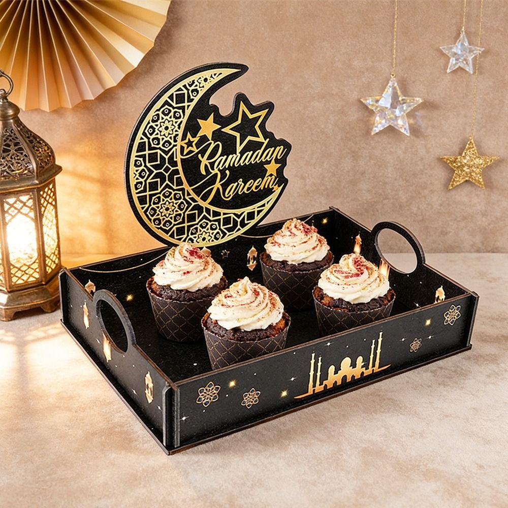Star Moon Ramadan Wooden Tray Detachable Handmade Eid Mubarak Snack Tray Funny Middle Dessert Container Festive Decorations